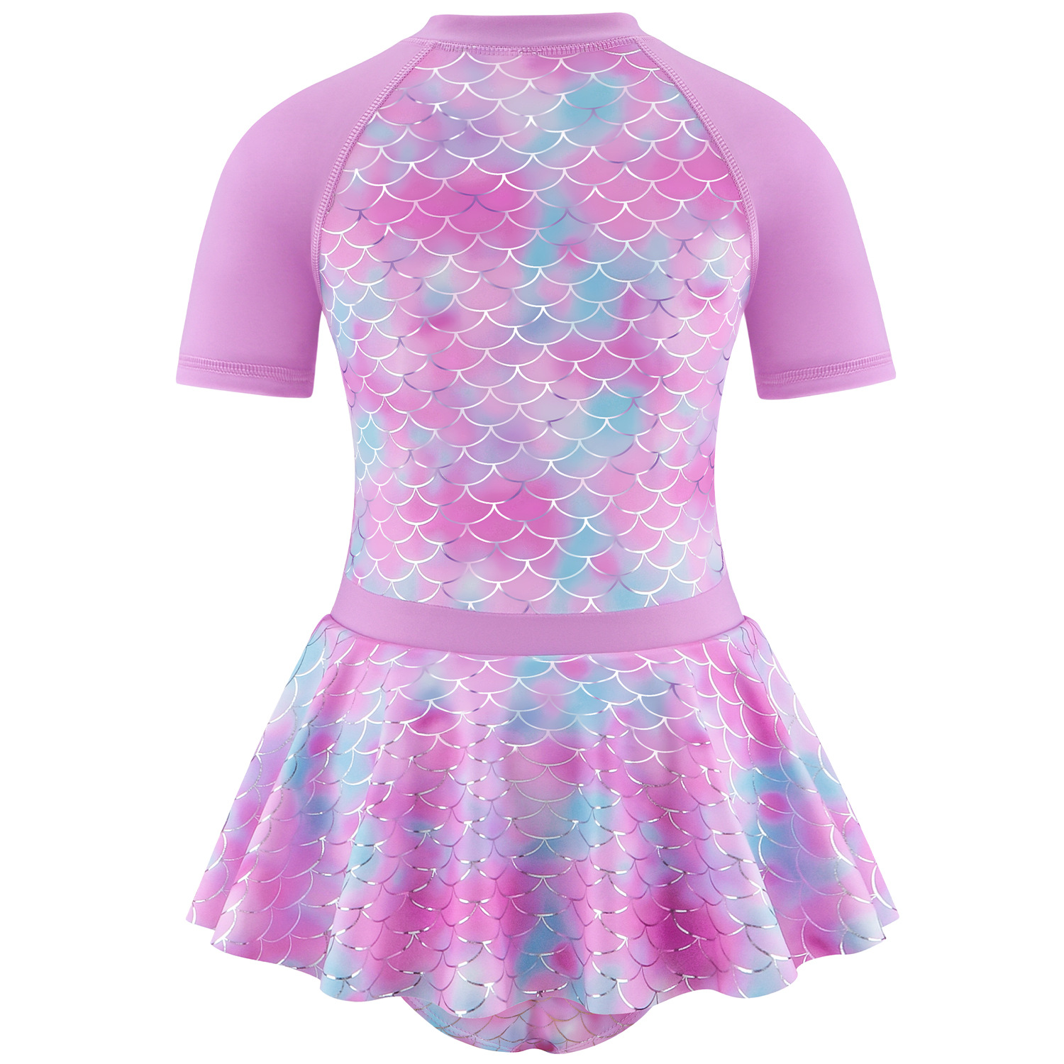 Girls one-piece swimsuit with silver fish scale print medium and large children’s swimsuit girl purple princess skirt