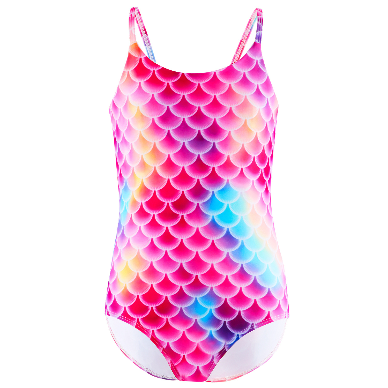 An one-piece swimwear for girls, allover fish scales print makes girls more beautiful and look like a mermaid.